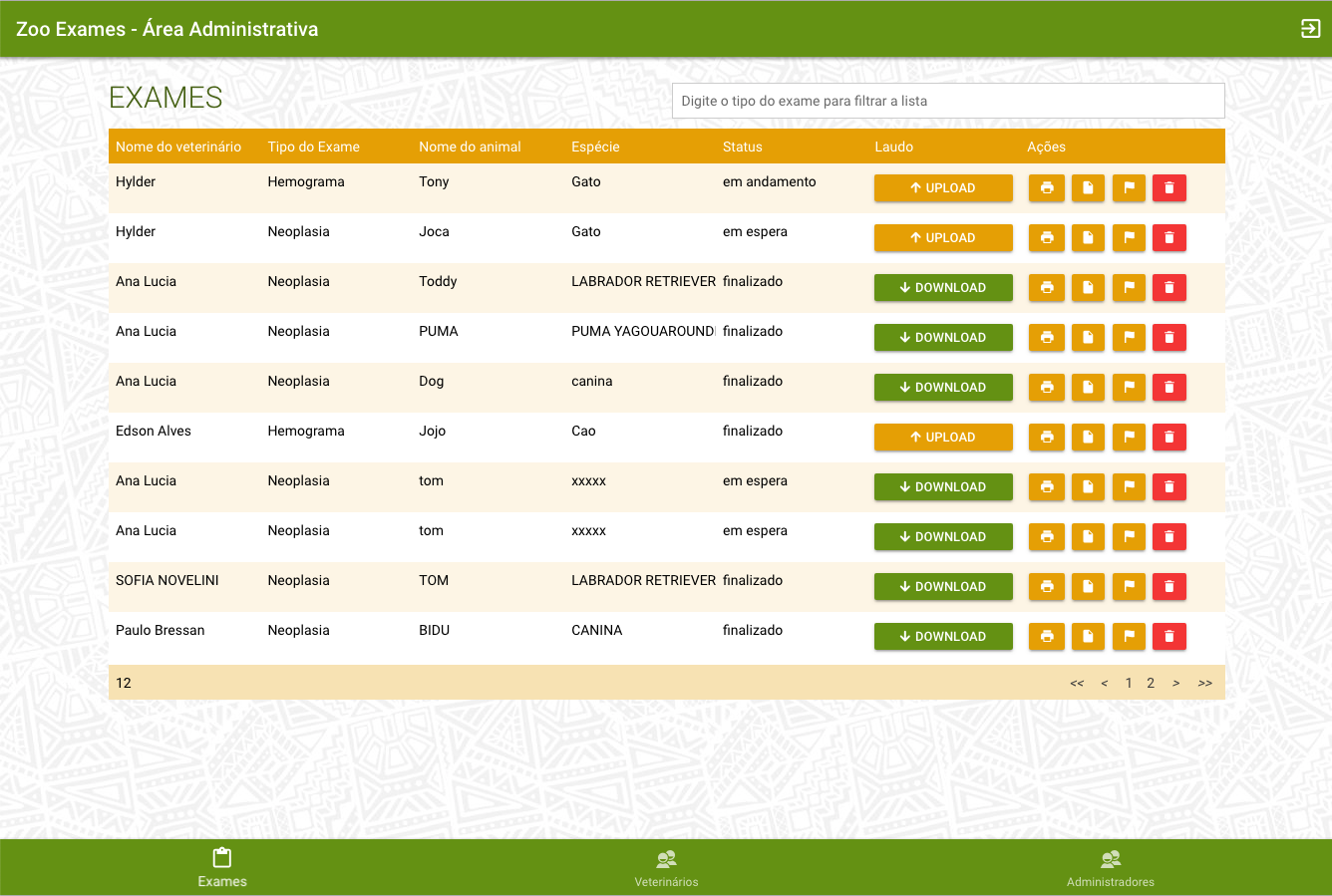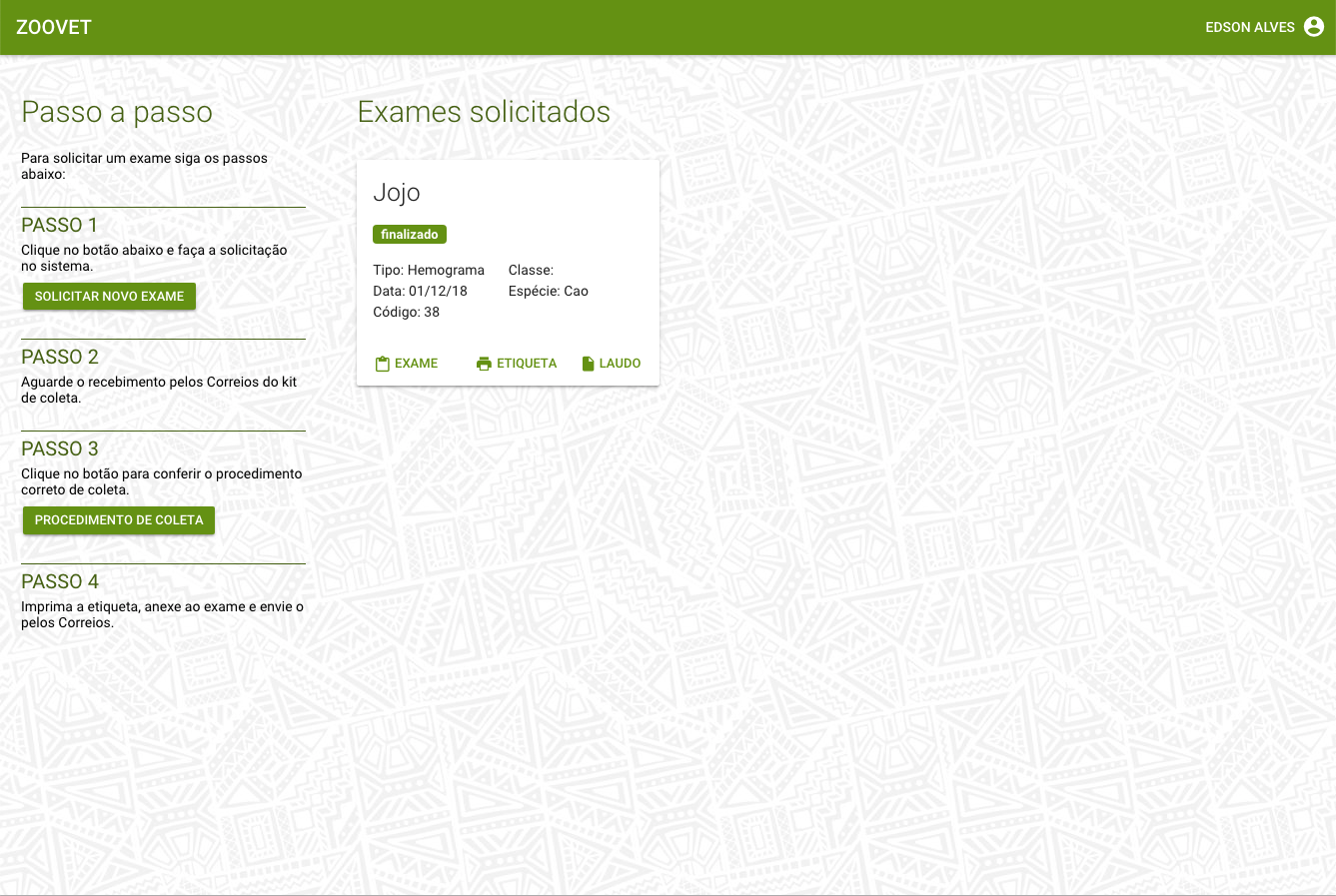 Sistema PWA onde os veterinários solicitam exames para o Zoológico de São Paulo.